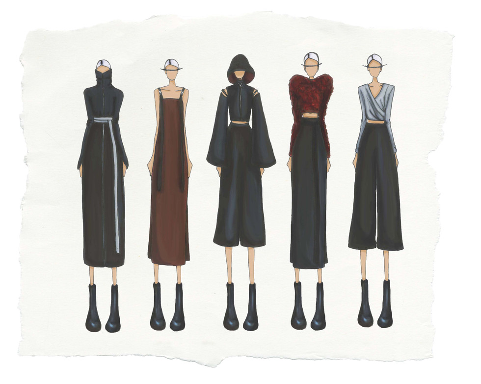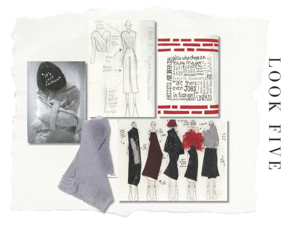 After being educated on the shame that comes along with being a part of the fashion industry, I was curious as to what contributed to these feelings of shame and how these feelings are holding back the potential of the fashion industry in ways such as creativity, talent, and sustainability. I was inspired to create a project that would express these feelings while at the same time educate others on the topic. I began by asking questions such as: What causes the fashion industry to continue to be so unsustainable? How is shame in the fashion industry holding back the industry's potential to be sustainable? These concepts influenced my decisions of form, fit, colors, and overall style/aesthetic in creating my final designs.